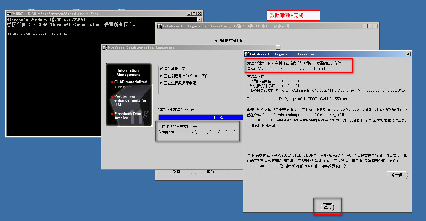 --会弹出要创建数据库的用户的口令(用户有SYS/SYSTEM/DBSNMP/SYSYMAN)