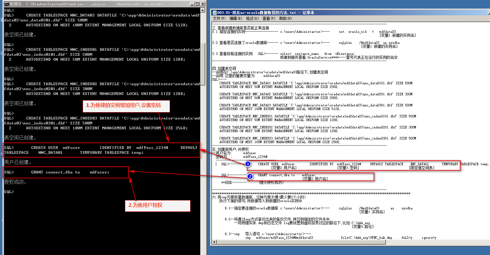 SQL>---------- CREATE USER mdfuser IDENTIFIED BY mdfPass_1234# DEFAULT TABLESPACE NNC_DATA01 TEMPORARY TABLESPACE temp;