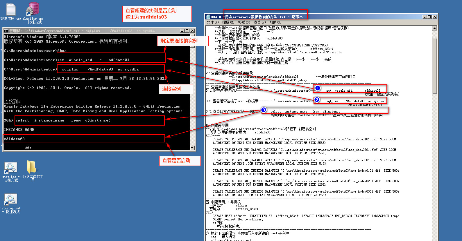 3.1.指定连接的实例------------------ c:\users\Administartor>---- set oracle_sid = mdfdata05