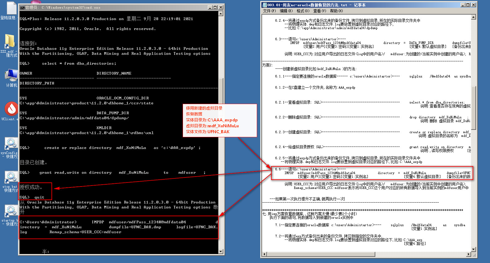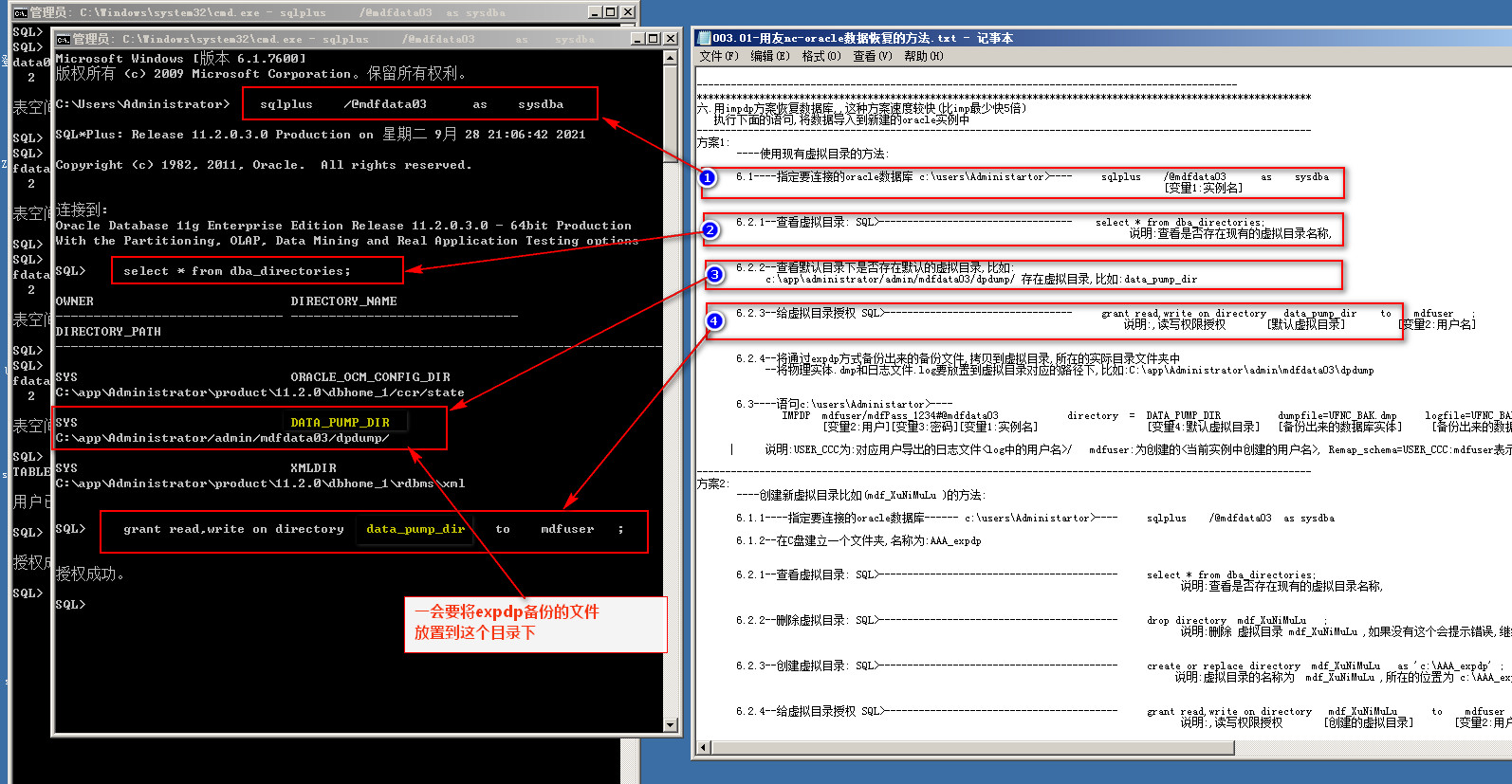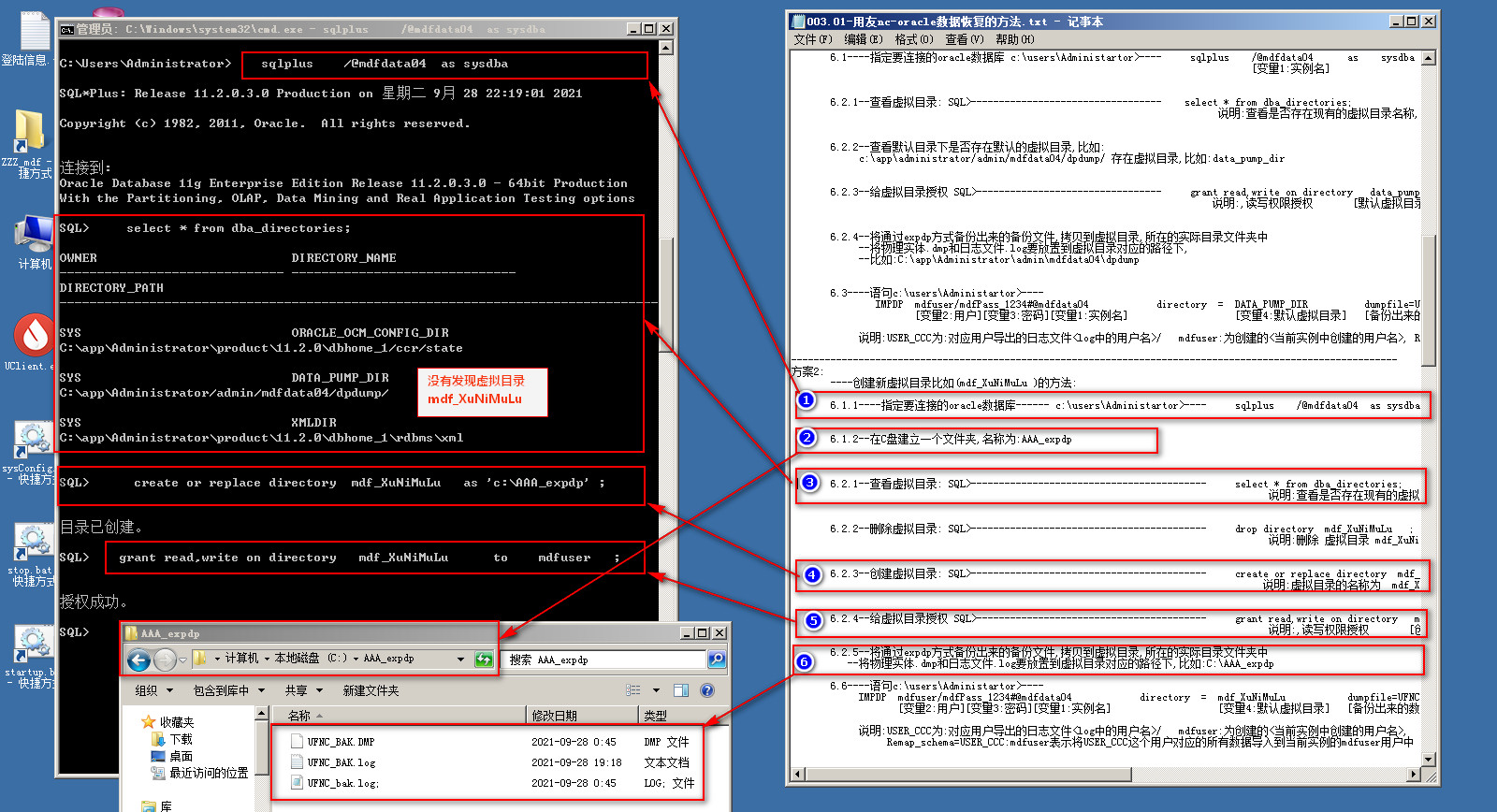 6.2.3--创建虚拟目录: SQL>------------------------------------------ create or replace directory mdf_XuNiMuLu as 'c:\AAA_expdp' ;