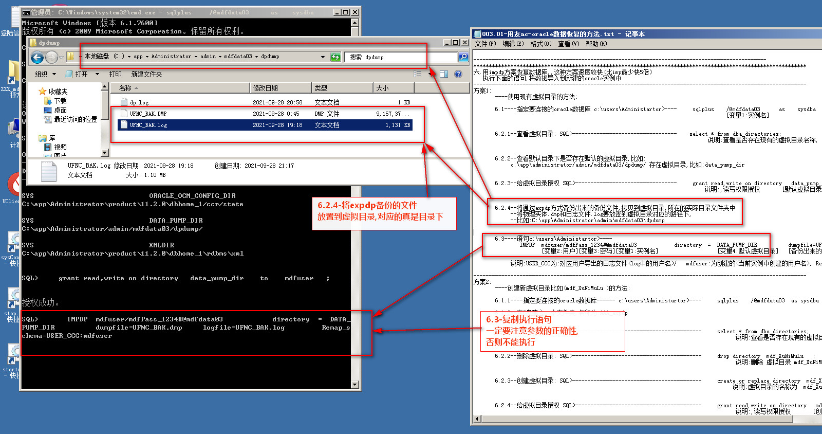 --将物理实体.dmp和日志文件.log要放置到虚拟目录对应的路径下,