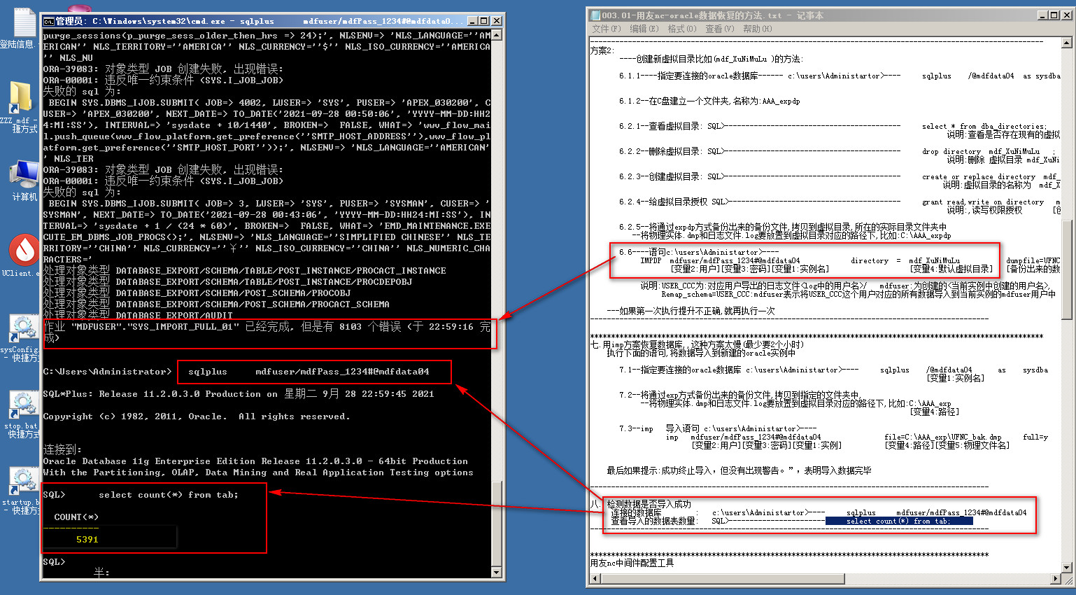 3.2.查看是否连接了oracle数据库------ c:\users\Administartor>---- sqlplus /@mdfdata05 as sysdba