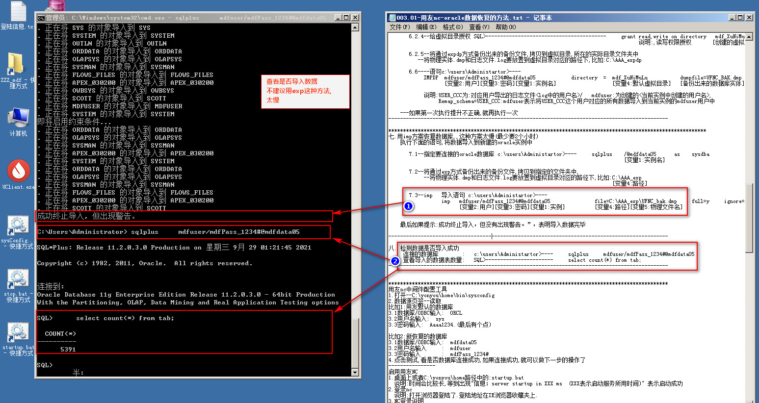 七.用imp方案恢复数据库,,这种方案太慢(最少要2个小时)