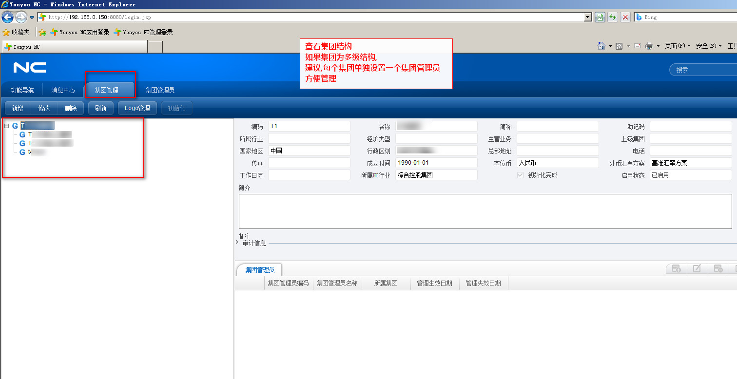 建议:如果是多级次多集团结构,则建议每个集团单独设置一个集团管理员,