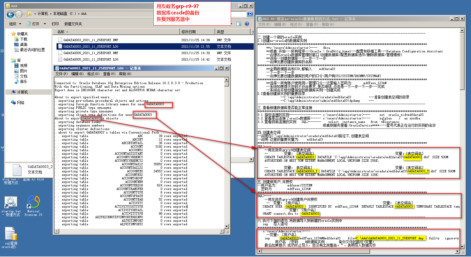 金算盘-oracle账套恢复方法