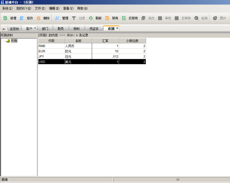 110.01-金蝶k3wise-币别