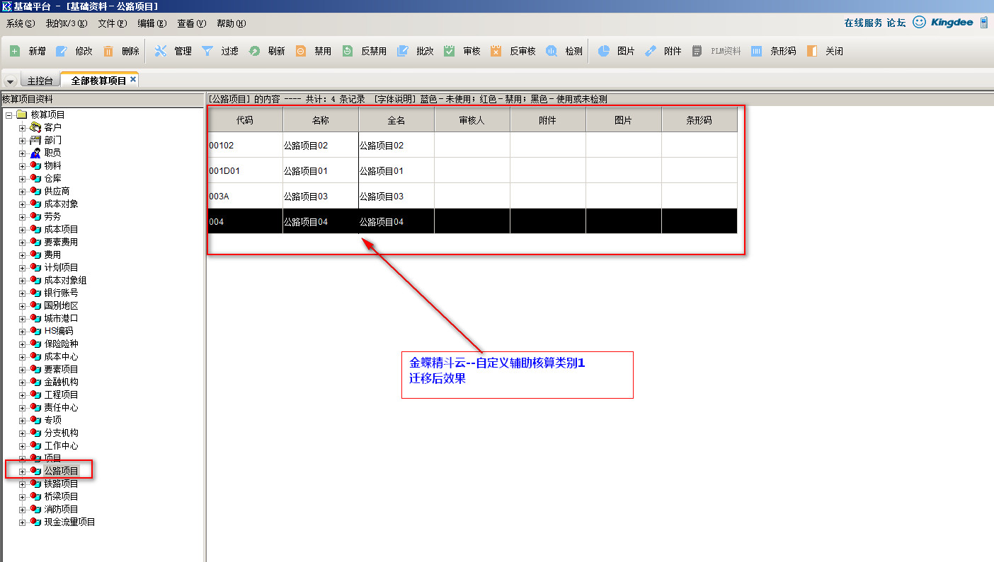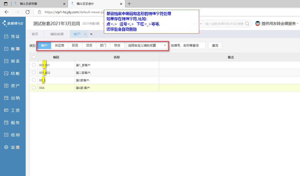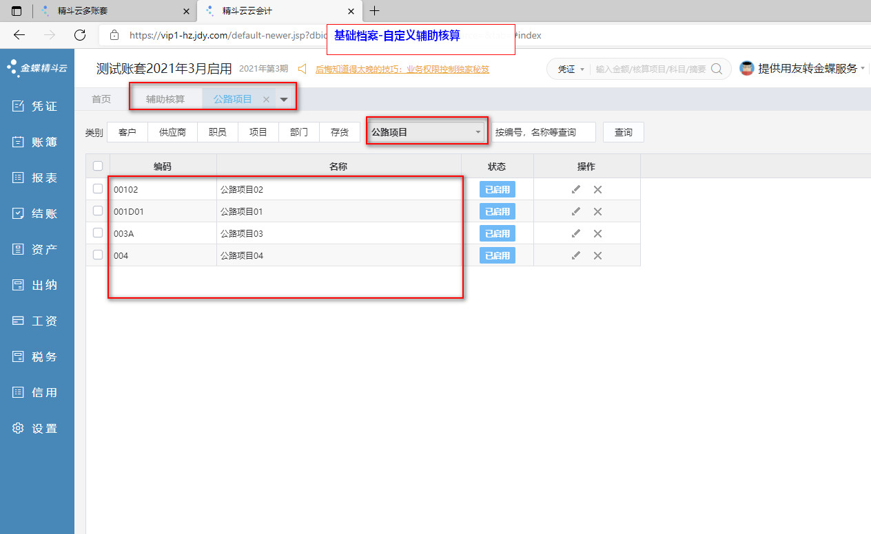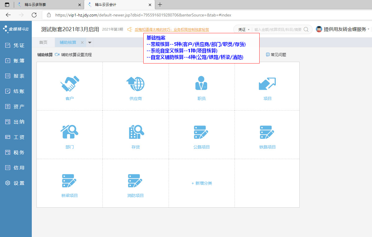 003.01-金蝶精斗云-基础档案-自定义辅助核算类别1