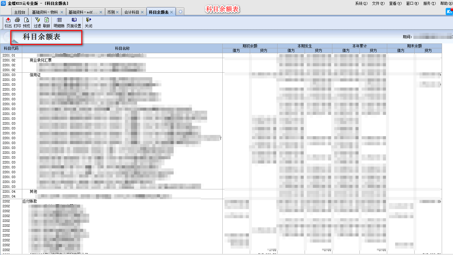 201-科目余额表
