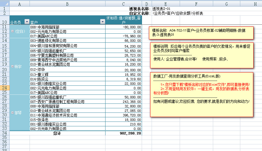 ---------反应每一个业务员,负责的每一家客户,将"应收账款","预收账款"等挂了客户往来的会计科目的,余额冲抵之后的,客户的"真实欠款"数据