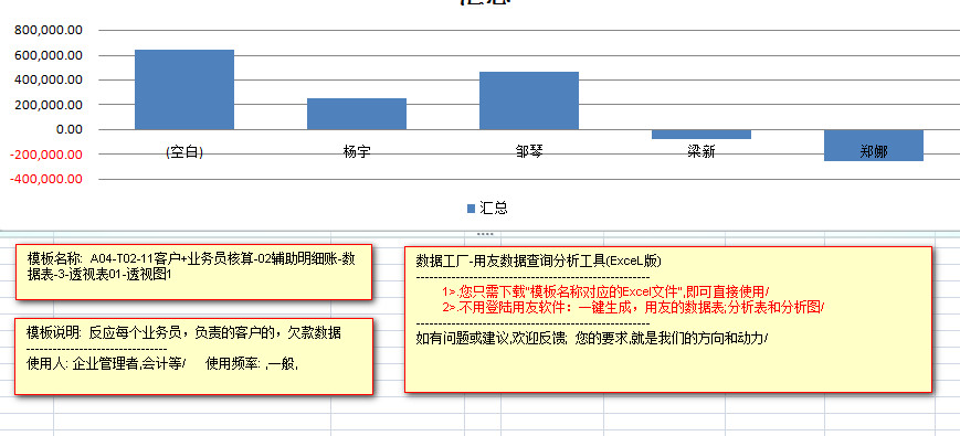 ---------以柱状图的形式展现, 每一个业务员,负责客户的,将"应收账款","预收账款"等挂了客户往来的会计科目的,余额冲抵之后的,客户的"真实欠款"数据