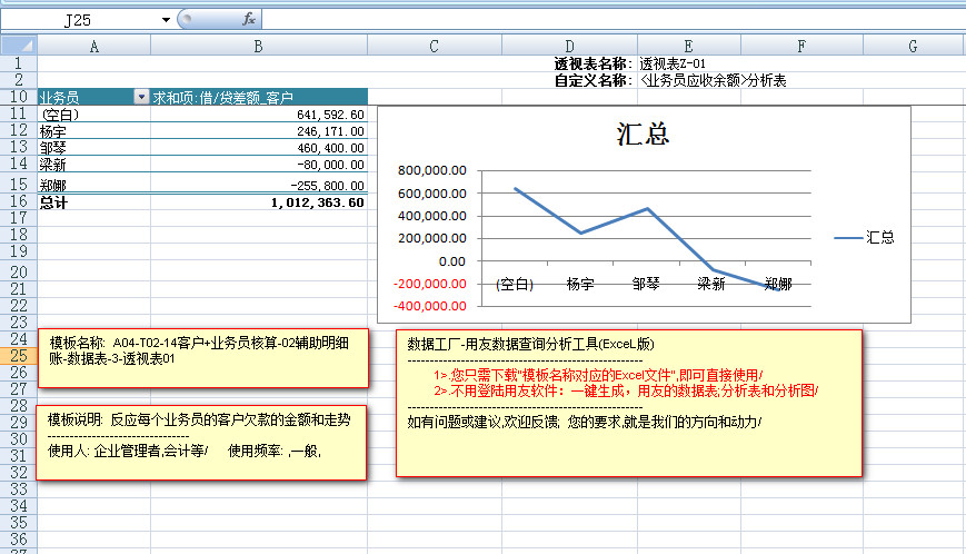 ---------反应每一个业务员,负责的客户,将"应收账款","预收账款"等挂了客户往来的会计科目的,余额冲抵之后的,客户总的"真实欠款"数据