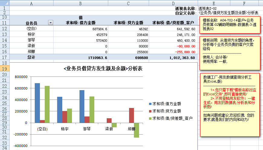 ----------< A04-T02-14客户+业务员核算-辅助明细账-数据表>---< 3透视表02>