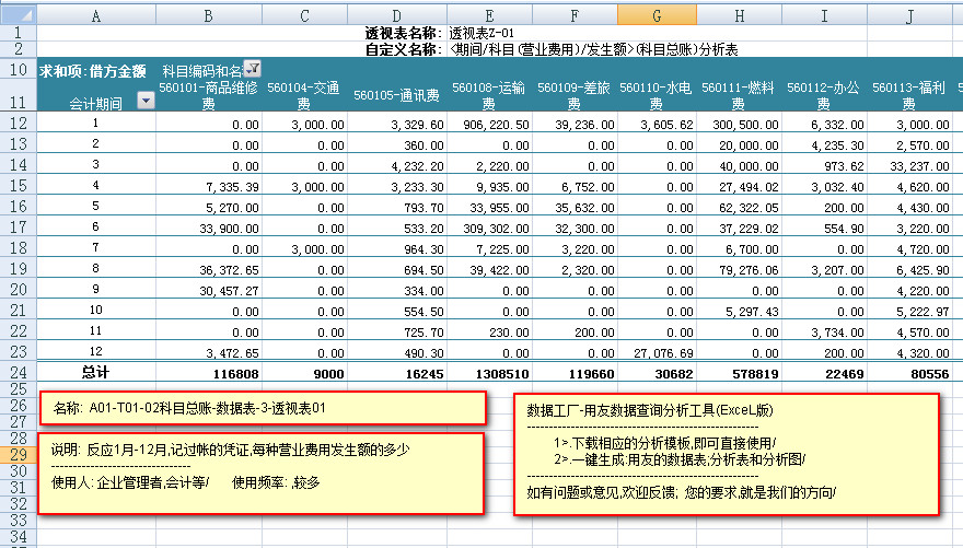 ---------反应每种营业费用,在1-12月中,每个月的,发生额数据信息