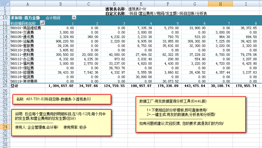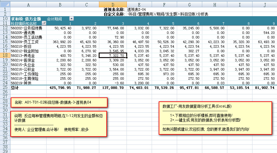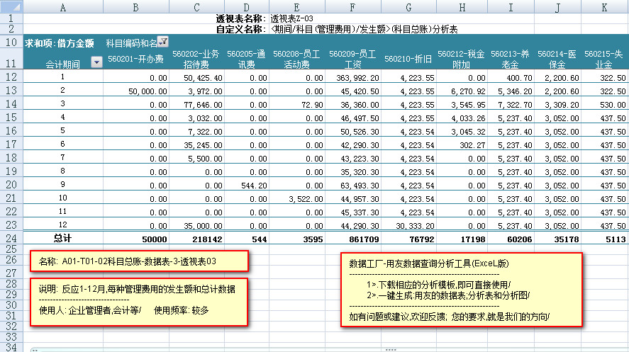 模板文件的名称: < A01-T01-02科目总账-数据表>