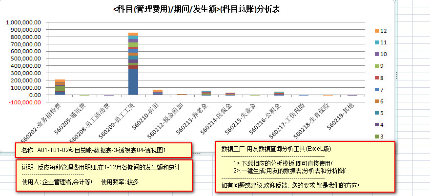 ---------反应每种管理费用,在1-12月中,每个月的,发生额数据信息