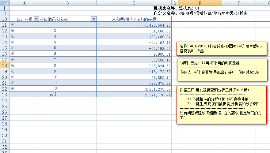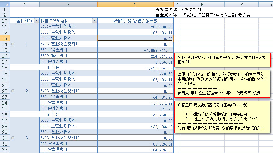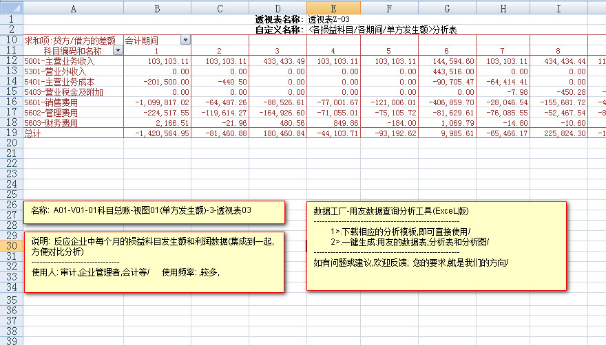---------反应损益类科目中,每个科目,在1-12月中,每个月的,发生额数据和利润数据