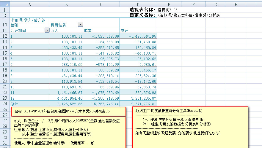 ---------相当于将全年的损益表集成到一起,方便对比分析