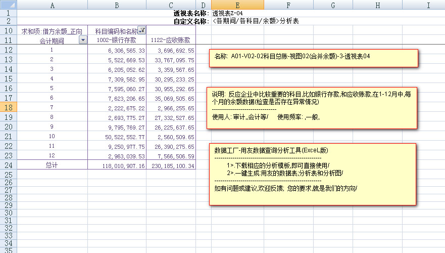 ---------1月到12月中,企业中的重要科目,比如银行存款和应收账款的余额的数据
