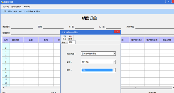 ■ 单据自定义字段有多种配置属性,可以灵活进行显示或隐藏,是否具有编辑属性,是否必须录入等