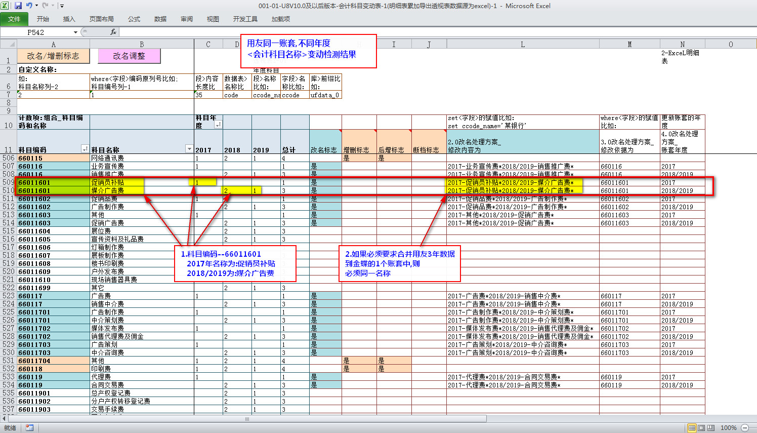 合并到一个金蝶账套的前提条件:将外部品牌软件(比如:用友,新中大,博科等)不同年度的会计科目名称统一