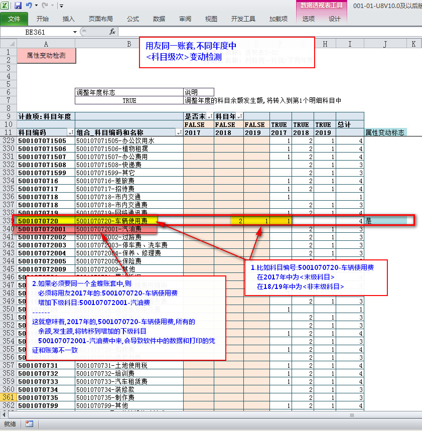 <相同的>会计科目编码----在<不同的年度中>可能存在如下问题: