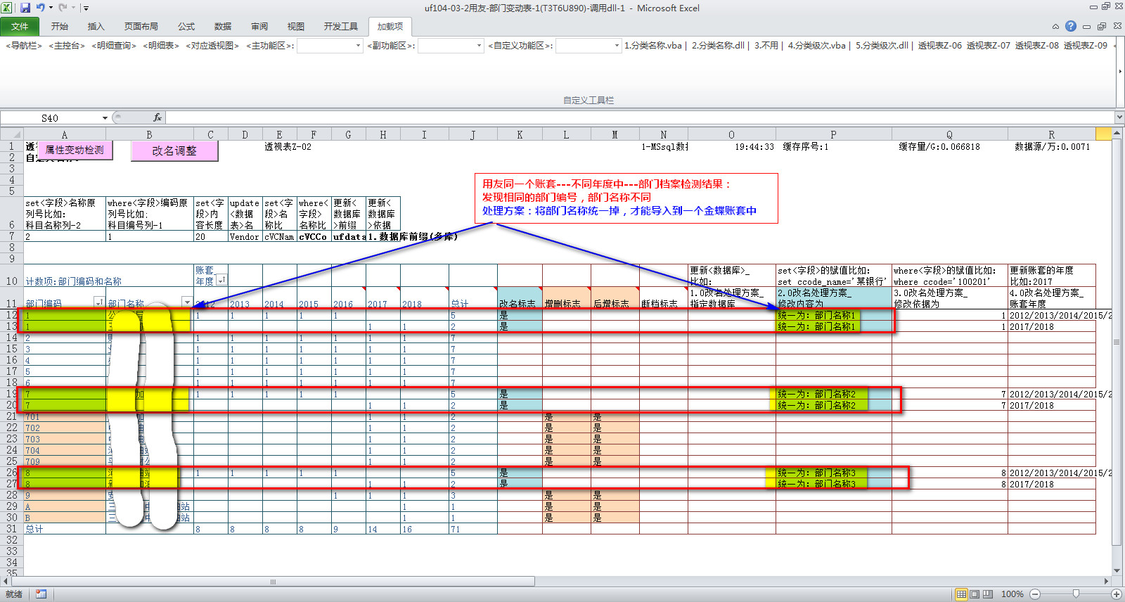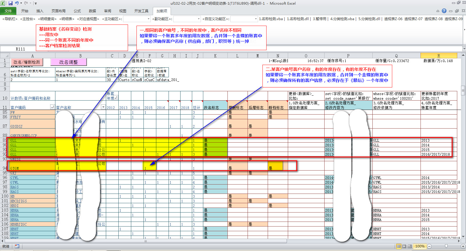 <相同的>基础档案编码----在<不同的年度中>可能存在如下问题: