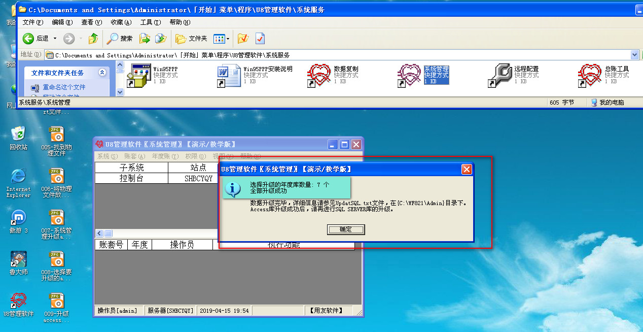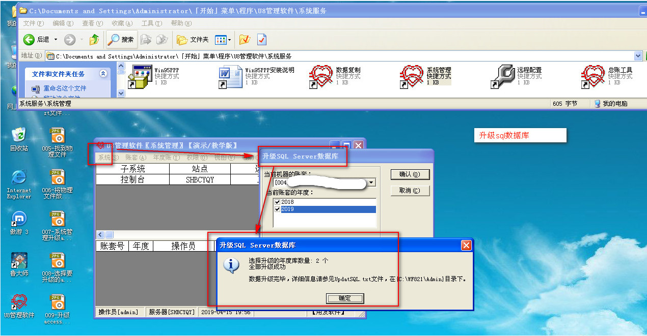 5.1>升级用友账套(会将用友和数据库会升级到全新的需要的版本中)