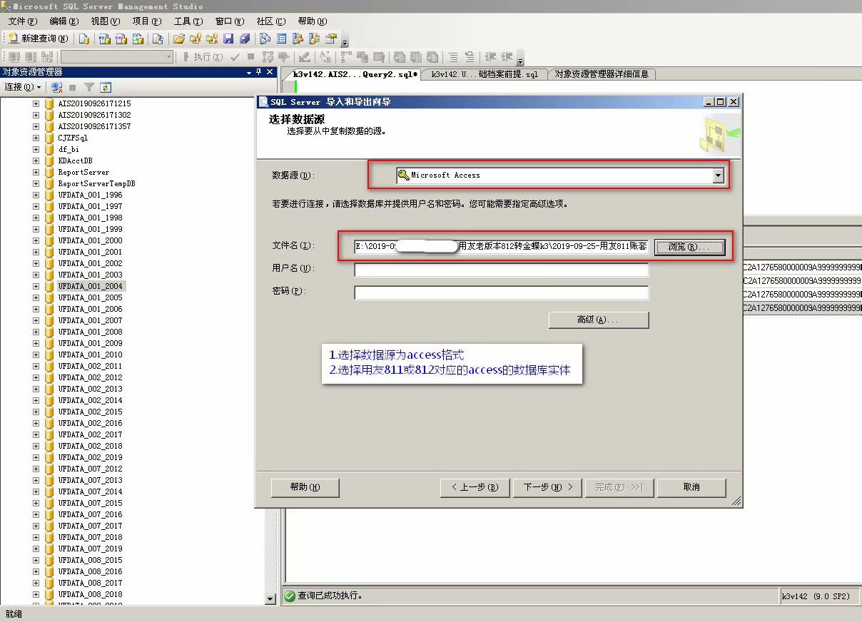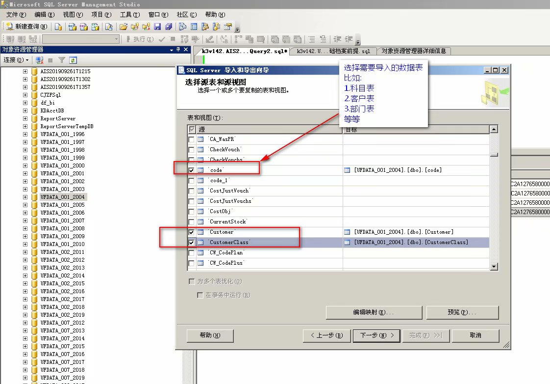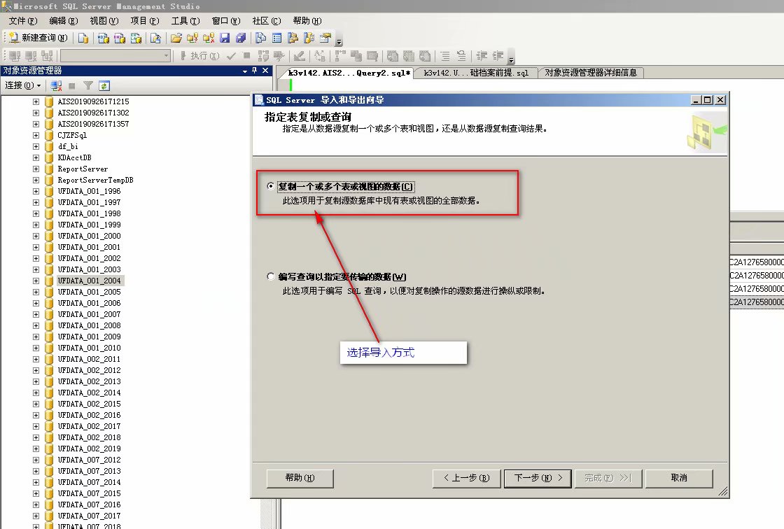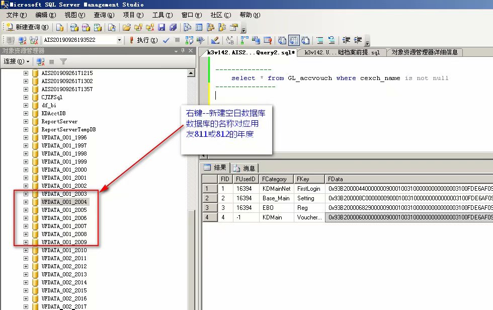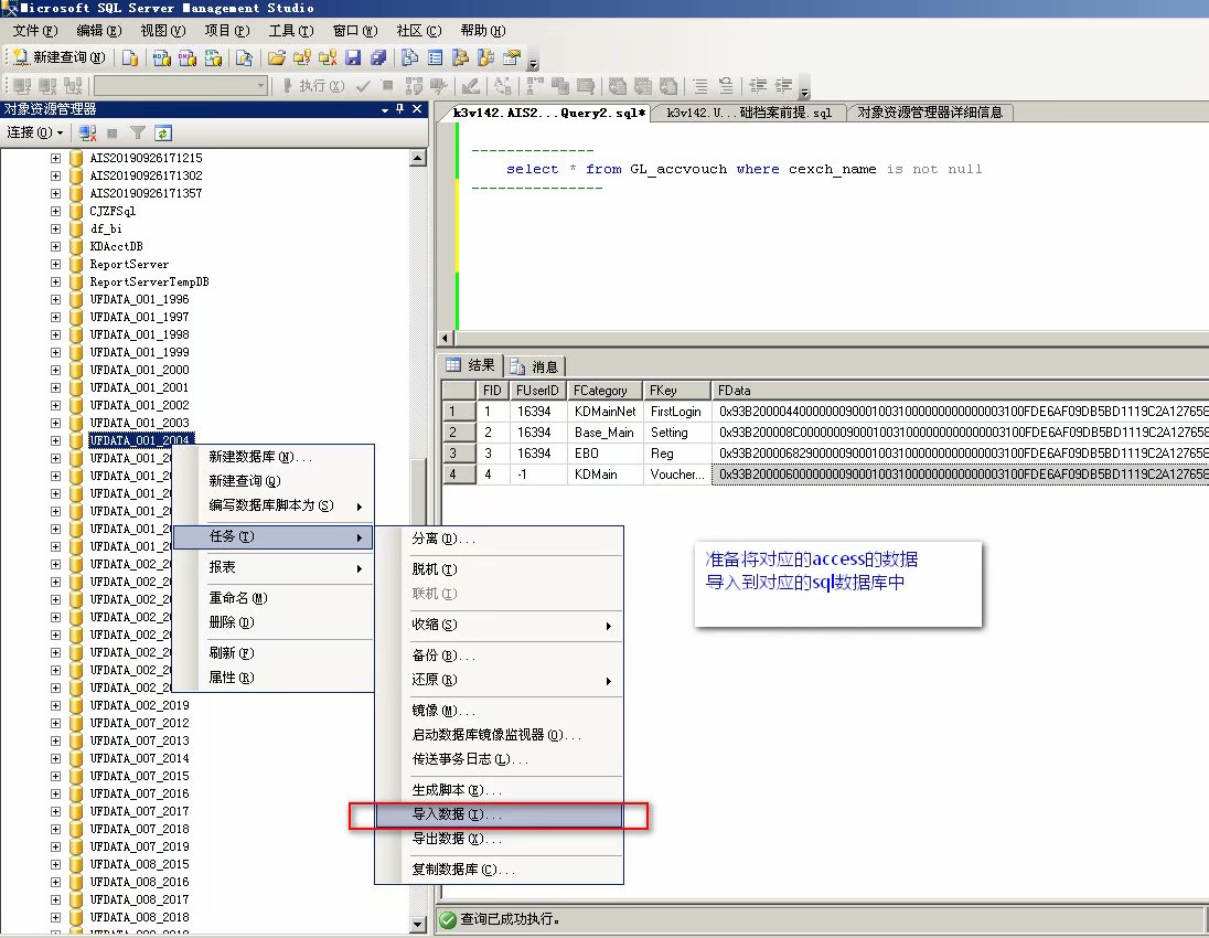 第二种方法:将用友老版本的数据先导入到sql数据库中,然后在迁移
