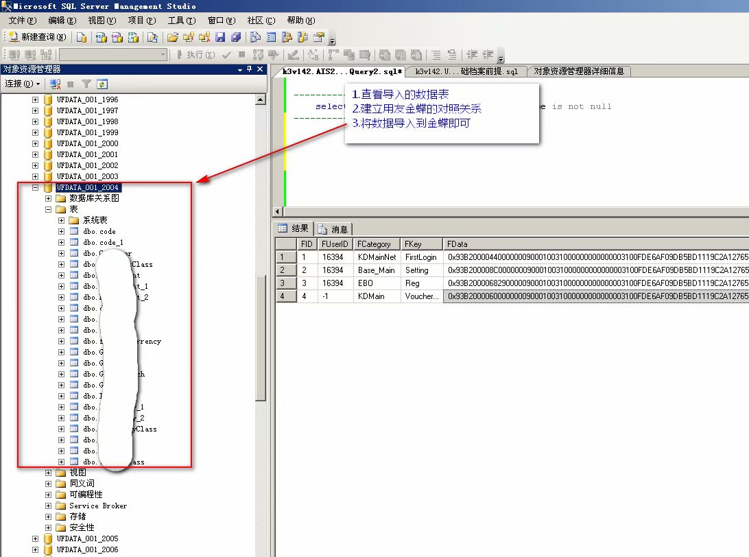 而在将数据迁移到金蝶的过程中,我们使用sql的数据库,这就导致,用友老版本的数据不能直接迁移到金蝶中