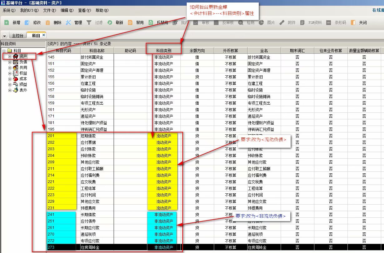 --金蝶k3--<会计科目>--<科目类别>属性的修改