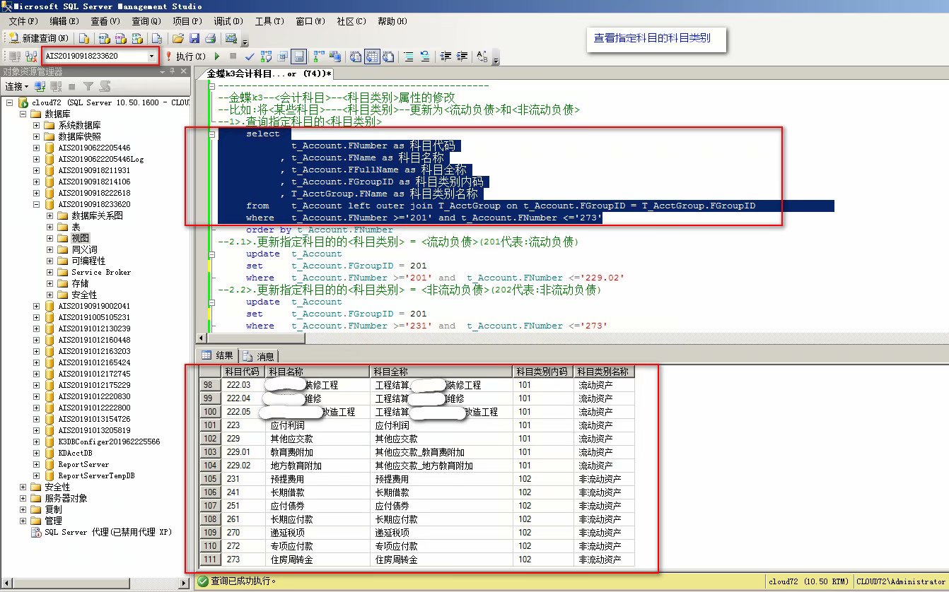 -----------更新金蝶的科目类别,建议采用如下方案: