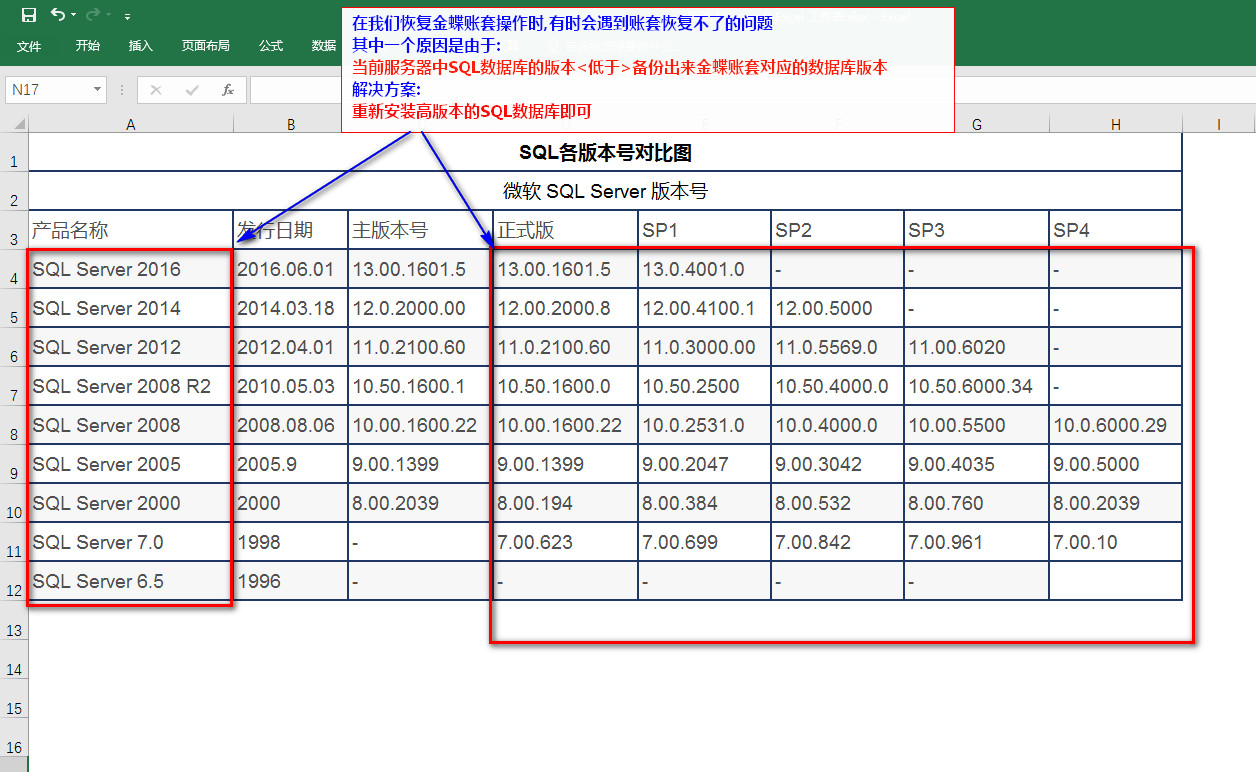 mssql server数据库版本对照说明