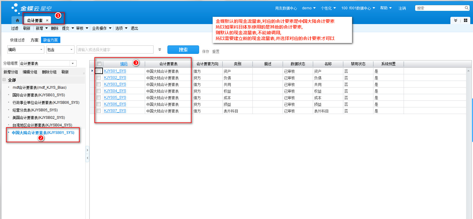 001-常见的会计要素-查看金蝶云星空中默认的会计要素,和自定义的会计要素