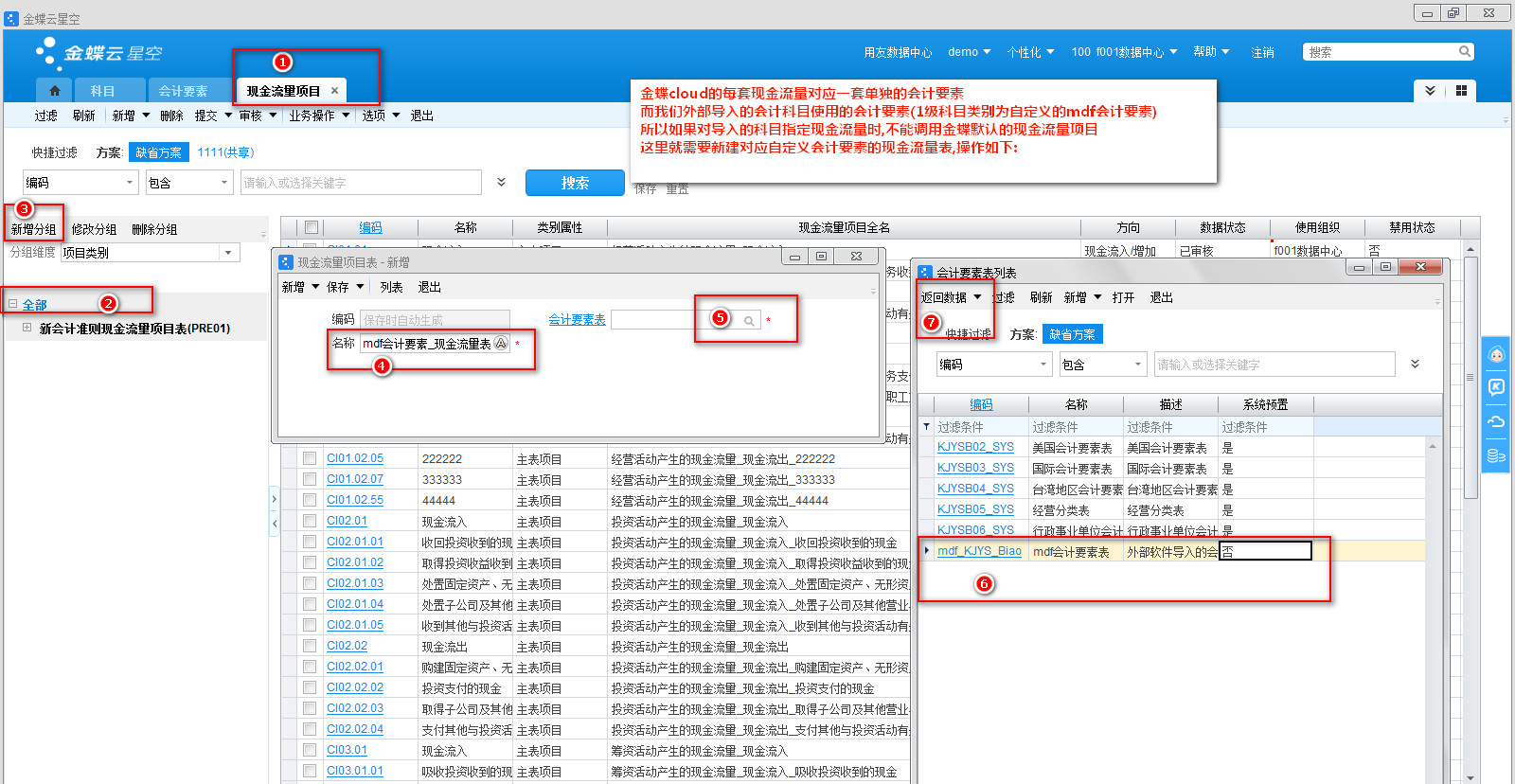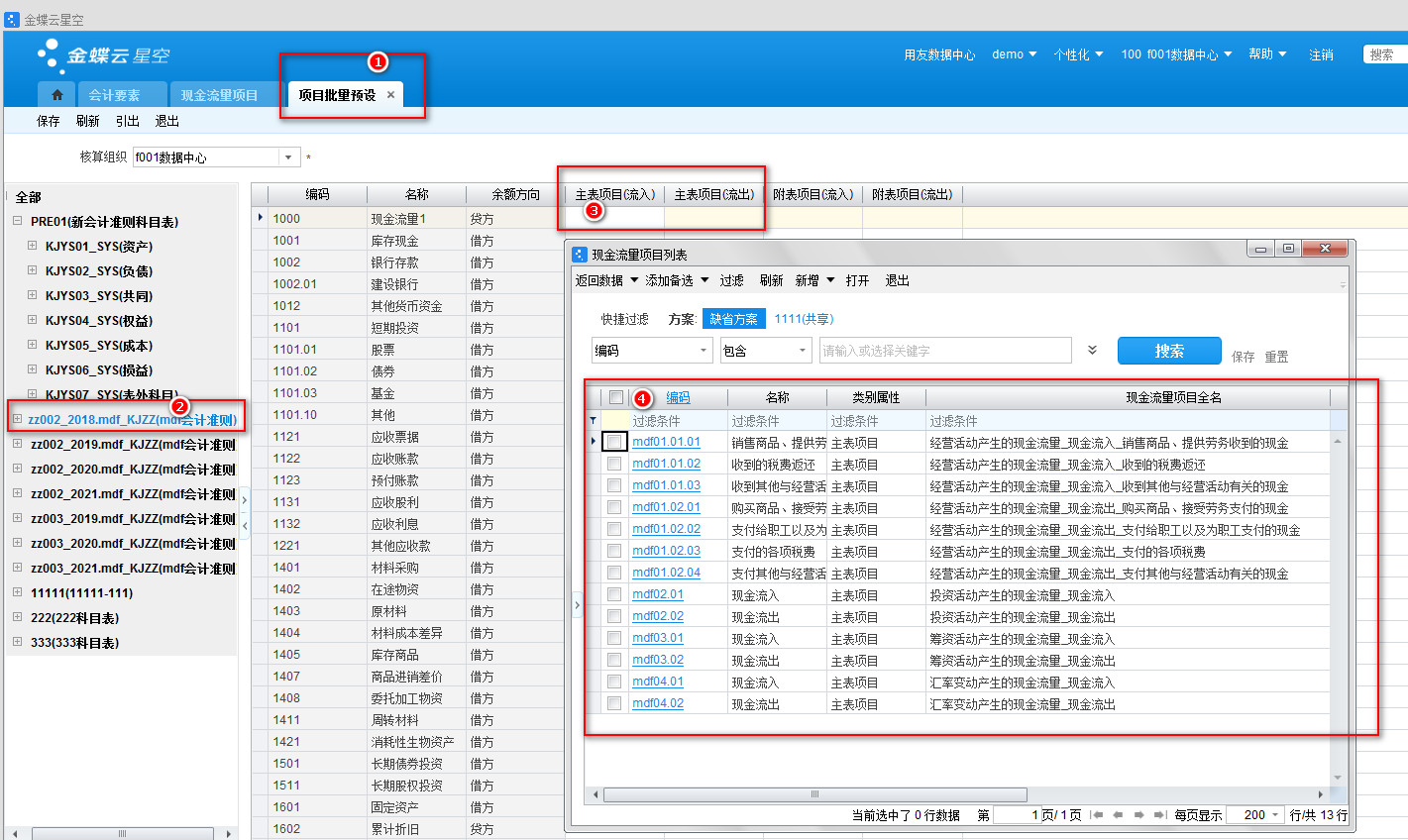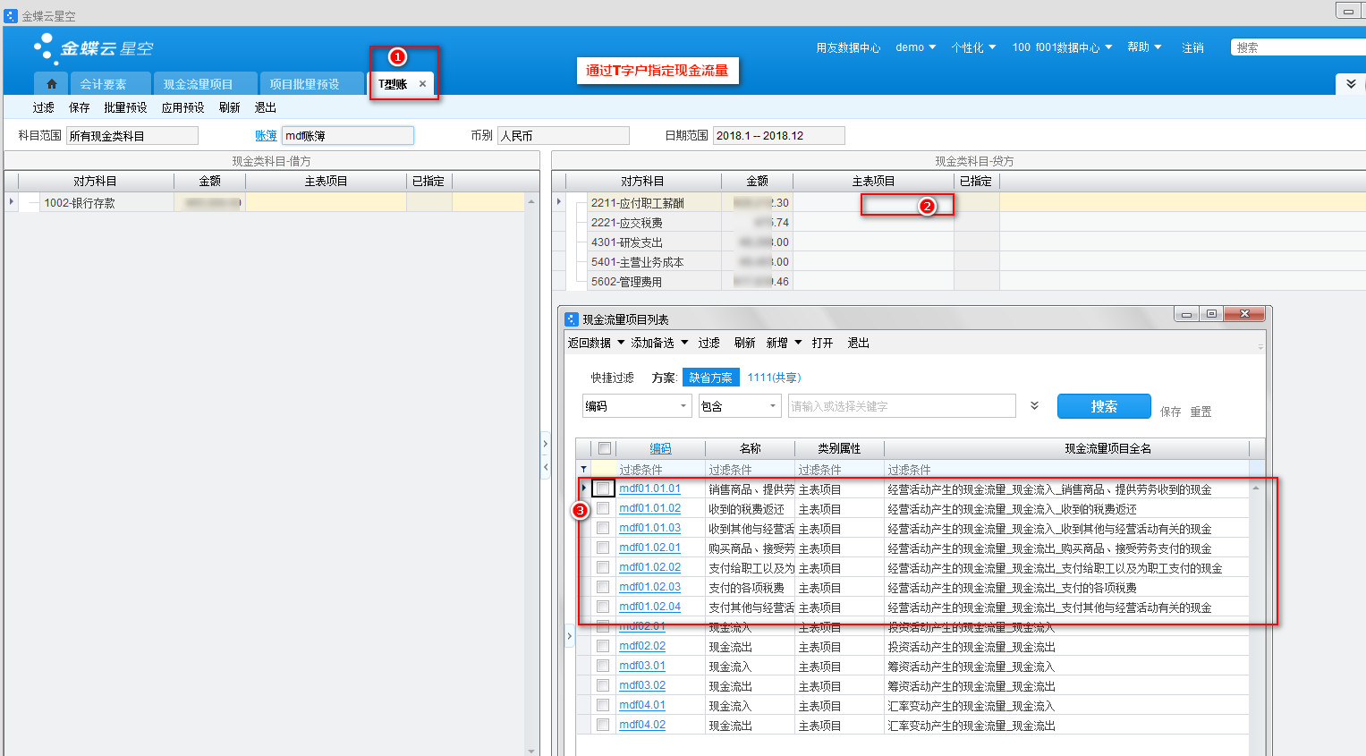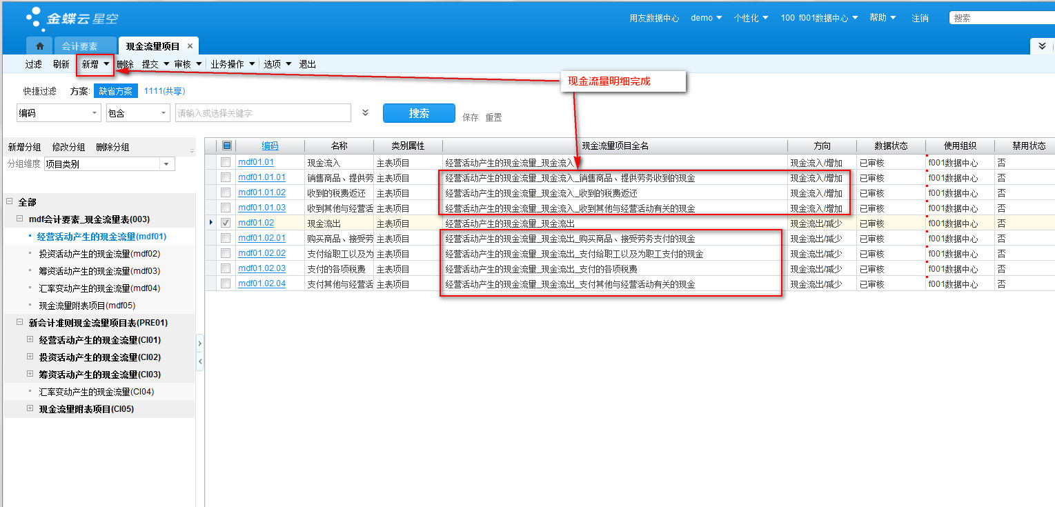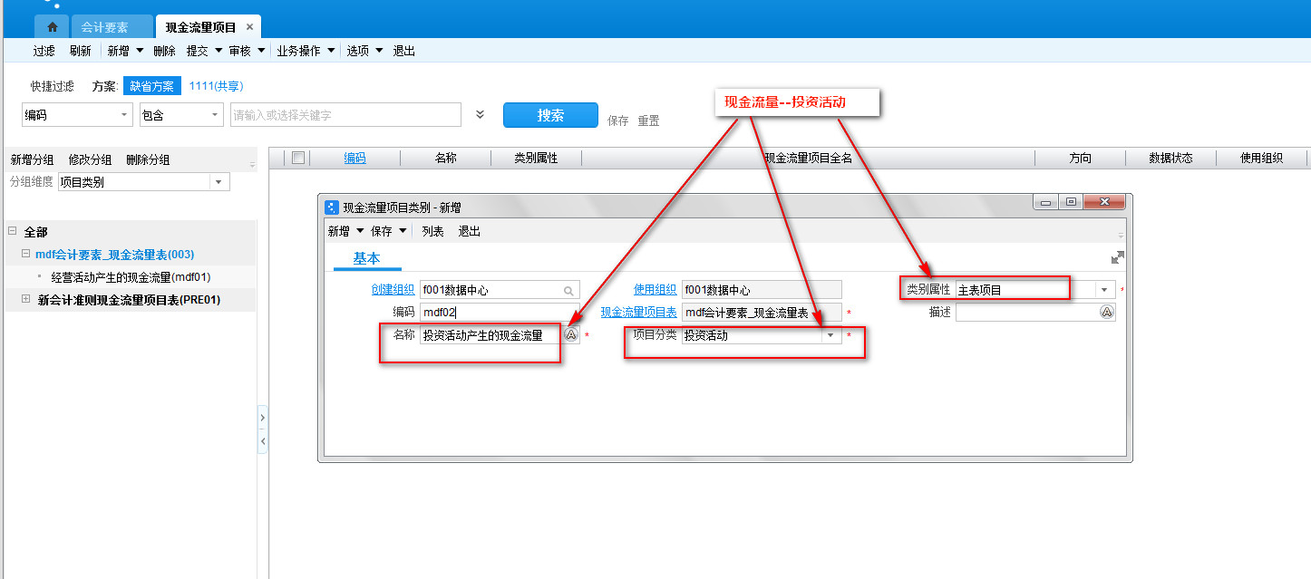 002-新建现金流量项目-现金对应自定义会计要素的现金流量体系