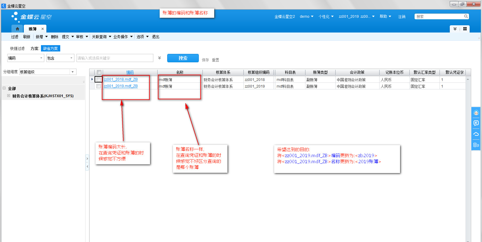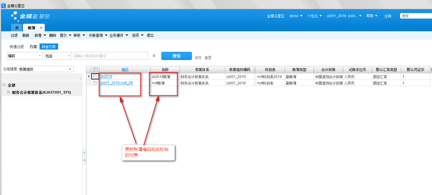 101_默认账簿的编码和名称