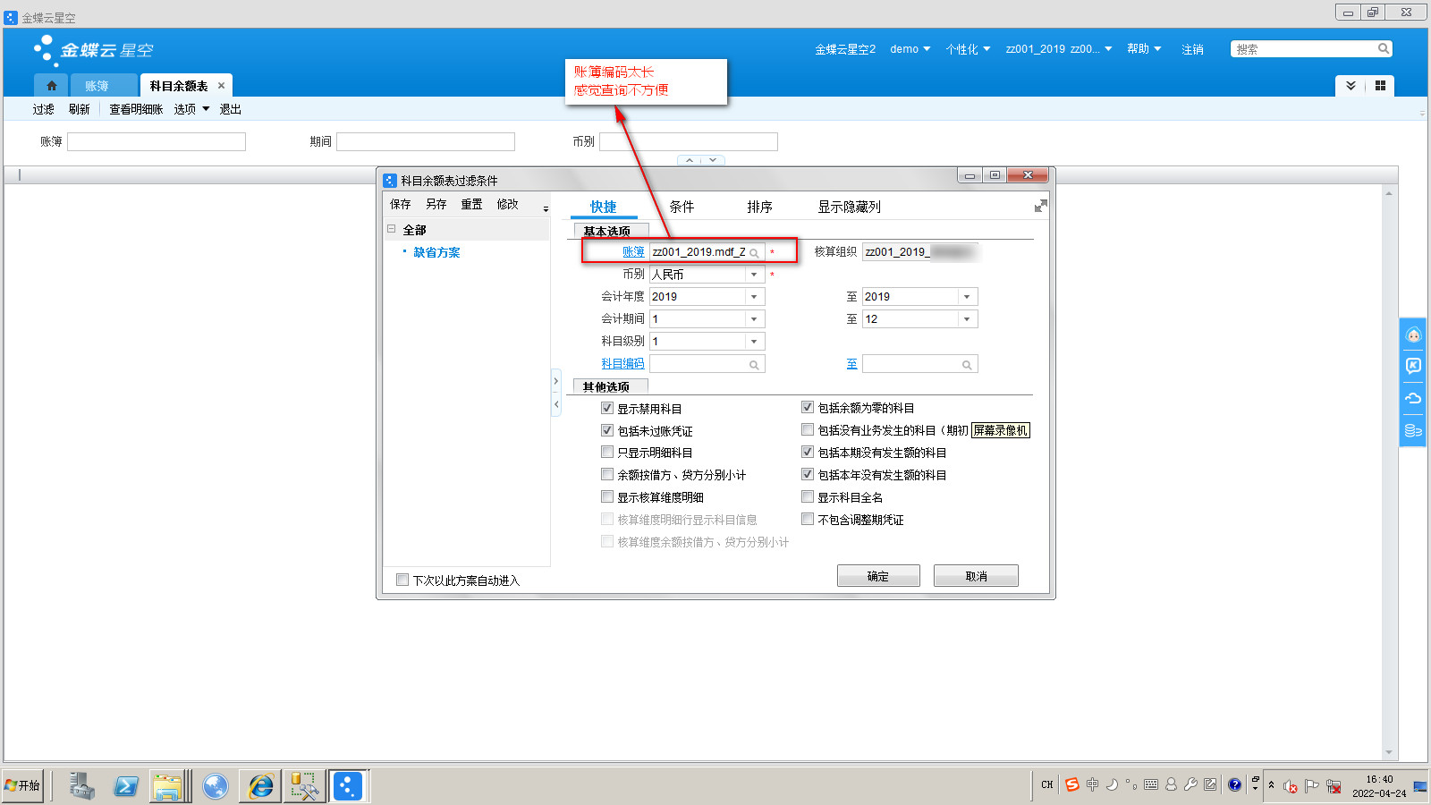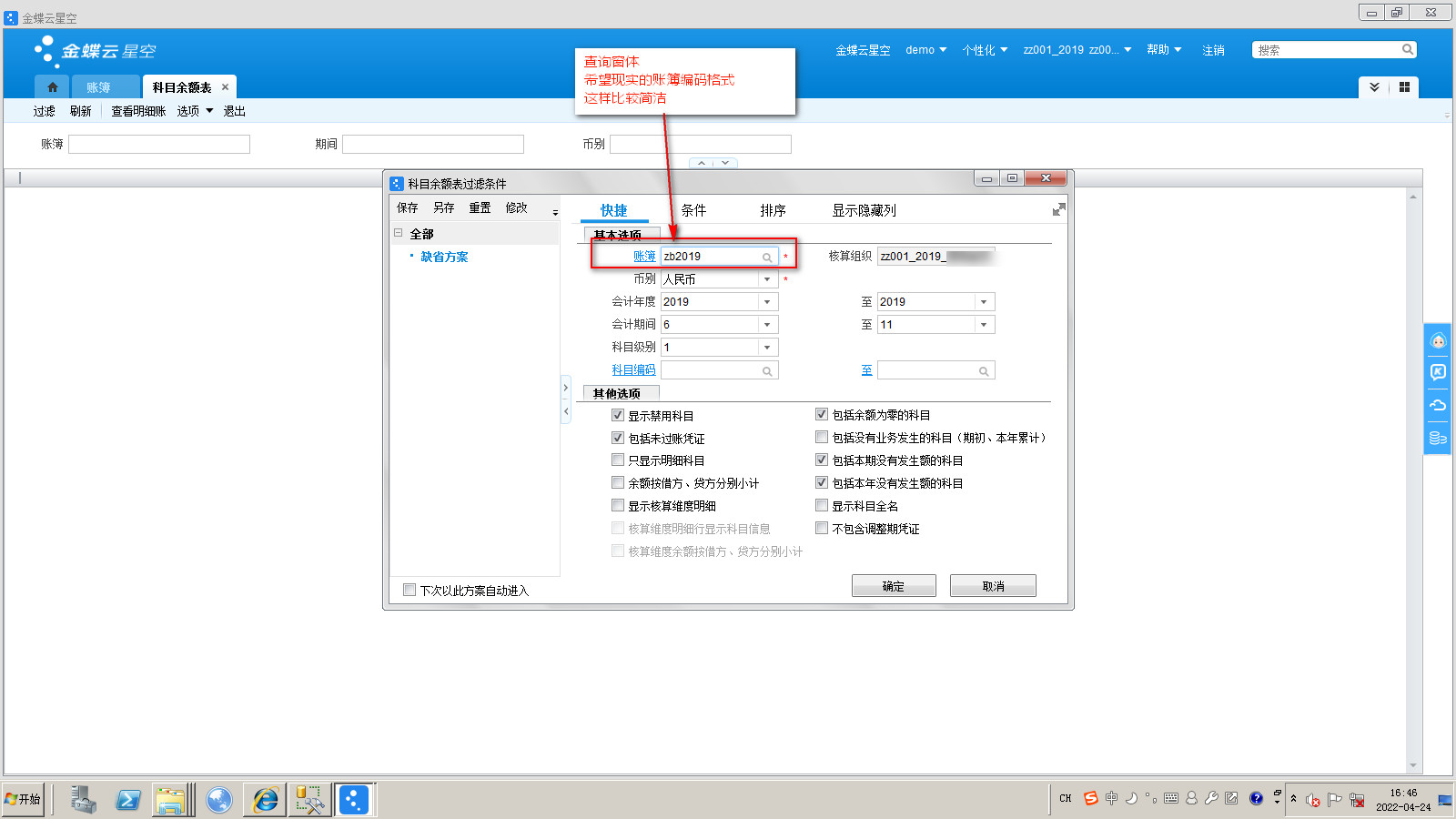 104-希望查询窗口显示的账簿编码格式