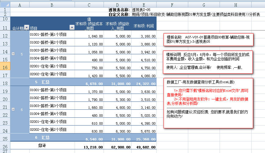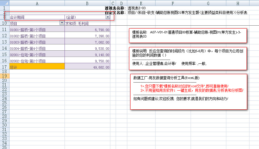 模板文件的名称: < A07-V01-01普通项目00核算-辅助总账-视图(单方发生)#>