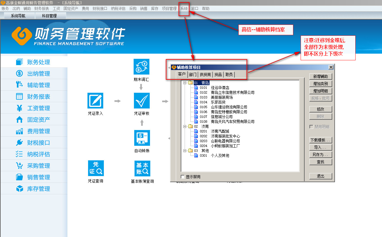 青岛高信(高新)财税软件凭证导入迁移到到金蝶kis专业版/kis旗舰版/k3wise