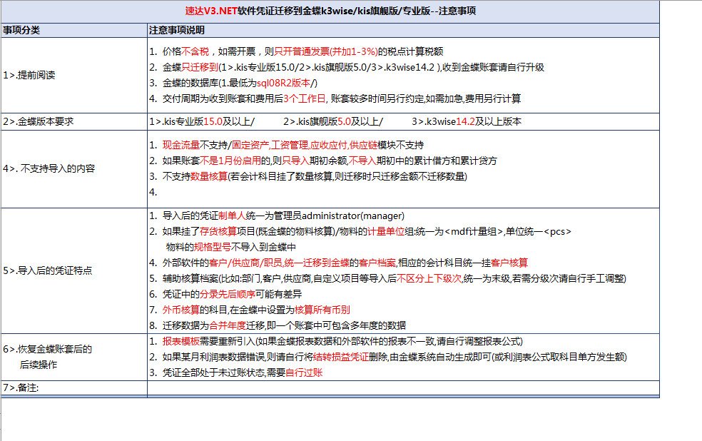 速达v3.net迁移到金蝶kis专业版/旗舰版/K3说明